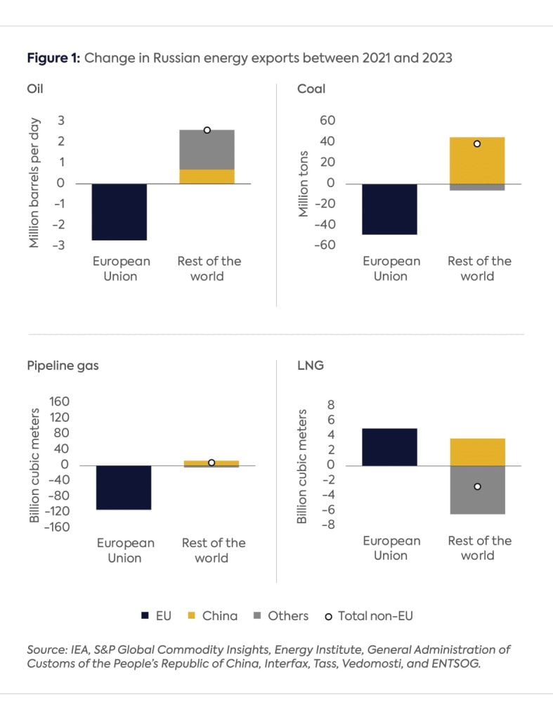 Russian energy exports to Europe have fallen precipitously since the invasion of Ukraine in February 2022, with pipeline gas and oil flows to Europe declining by more than 80 percent.