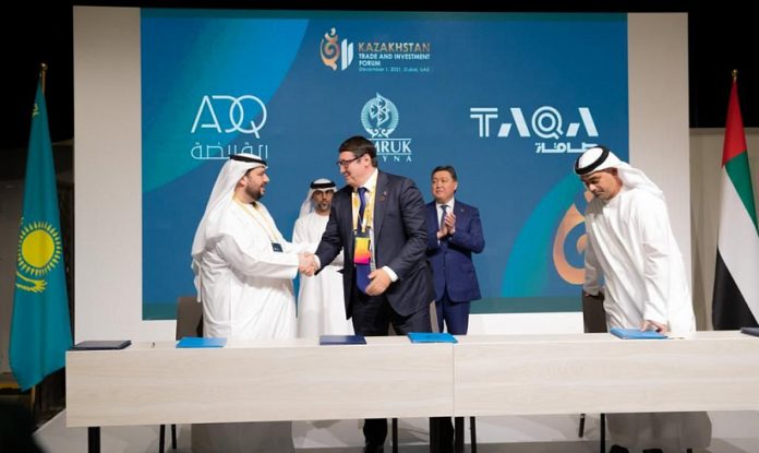 Samruk-Kazyna, the sovereign wealth fund of Kazakhstan, said on December 1 it has signed a long-term strategic agreement with Abu Dhabi Development Holding Company, doing business as ADQ, and Abu Dhabi National Energy Company (TAQA) to explore opportunities in the energy sector in the central Asian country.